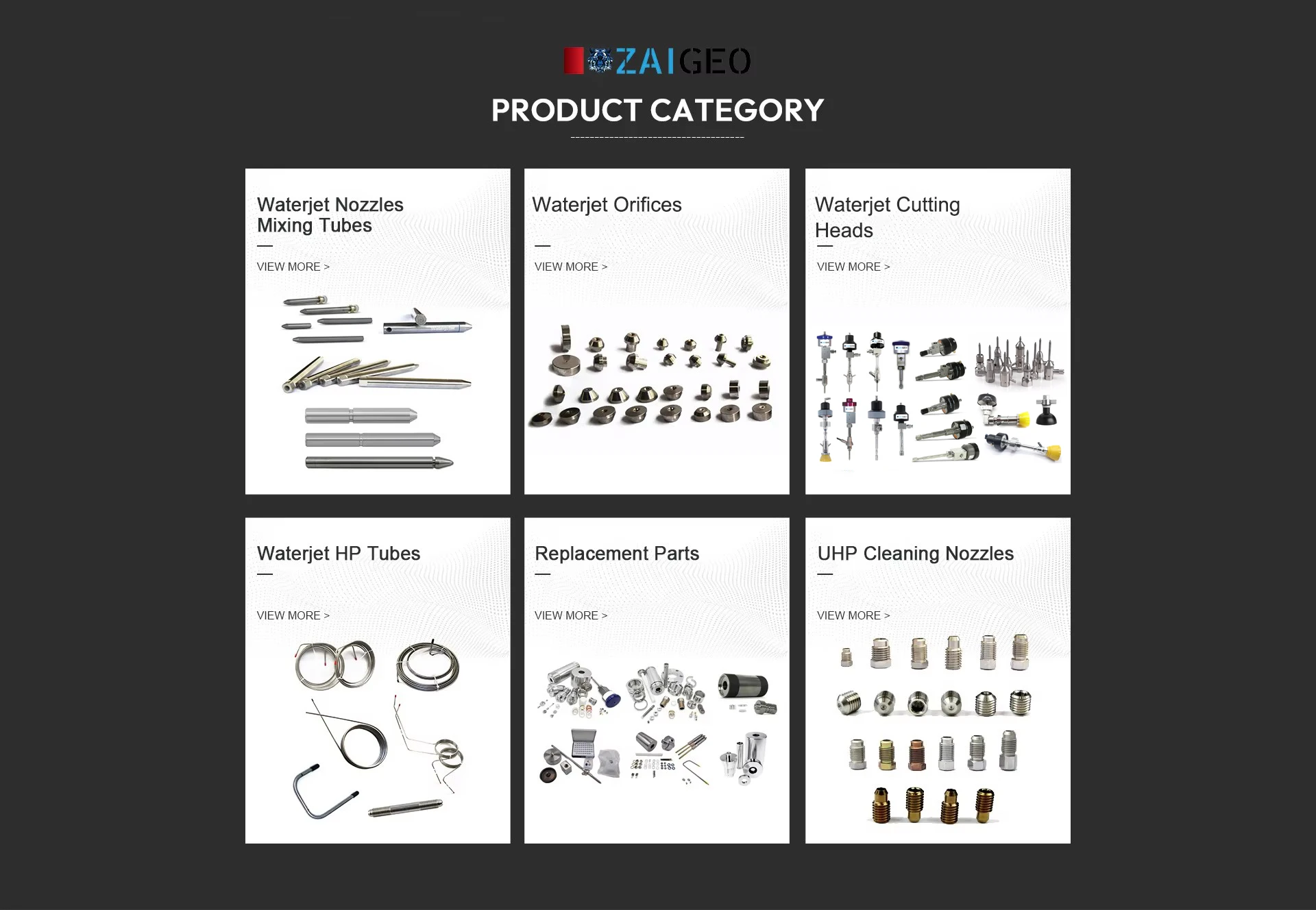 Productos principales:Piezas Waterjet, boquillas de limpieza UHP, boquillas Waterjet/tubos mezcladores, orificios de zafiro/rubí/Diamante, cabezales de corte de diamante